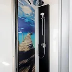 Racingtours Racecamp - Spielberg Hotell vetter mot bergen. Villan har ett badrum med en dusch.