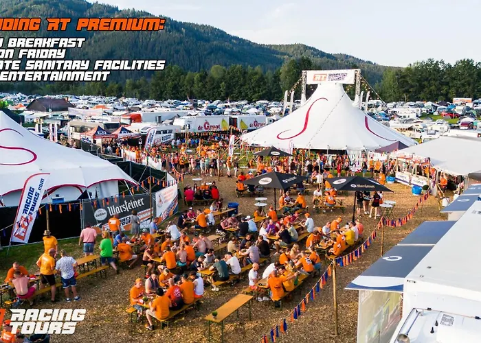 Racingtours Racecamp - Spielberg Hotell, som ligger cirka 25 minuters promenad från A1-Ring, erbjuder liveunderhållning och nattklubb för gästerna.